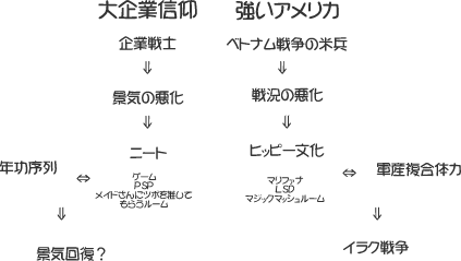 だけどその最前線が血なまぐさいものと気が付いたら?塹壕から出てこないよね。この状態がニートであり、戦地に行かなかったヒッピーなんだろう。