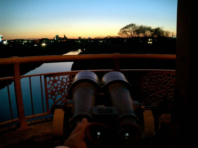 一度姿を捉えたのち、マックノート彗星は沈んでいきました。橋の欄干と主鏡の高さが同じくらいで見えなくなってしまいました。そこで双眼鏡の架台にゲタを履かせたりとごたごたしているうちに彗星の淡い光を見失ってしまいました。