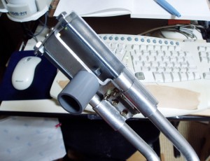 パイプをL字に曲げたアルミ板にボルトで固定。