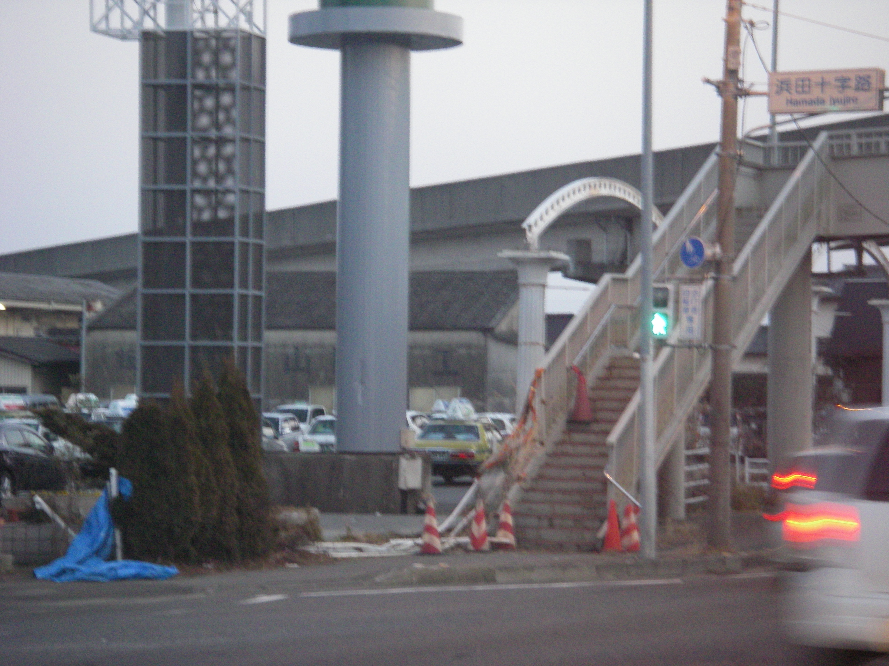 今日は珍しく助手席に座っていたので、ポケットに入れておいたカメラで写真を撮ってみました。一ヶ月ほど前から手すりがぶっ壊れてました。写真でみて初めて奥の柱にクルマが空中でぶつかったことが分りました。