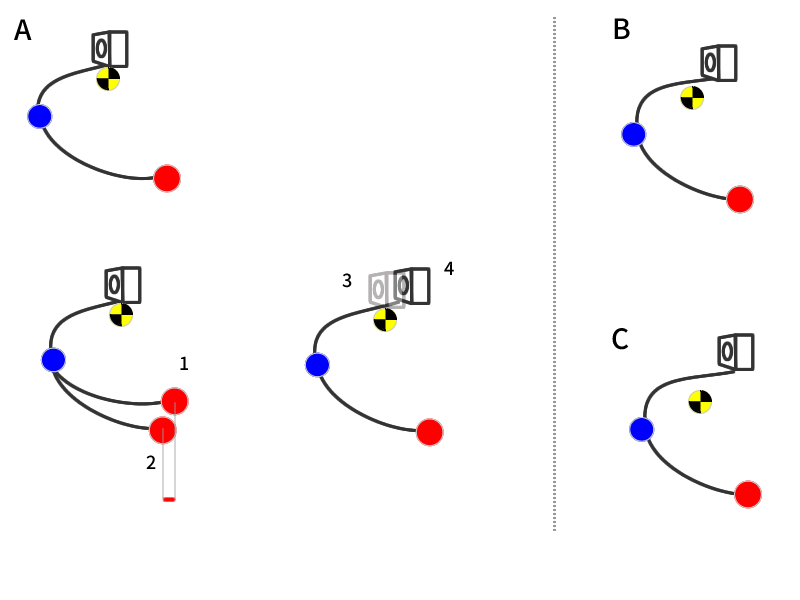 使用時に図A-2の状態にして、カメラを3から4にします。マーリンは開きを変えると、開きだけではなくカメラの前後位置も同時に調整が必要になる点が面倒です。