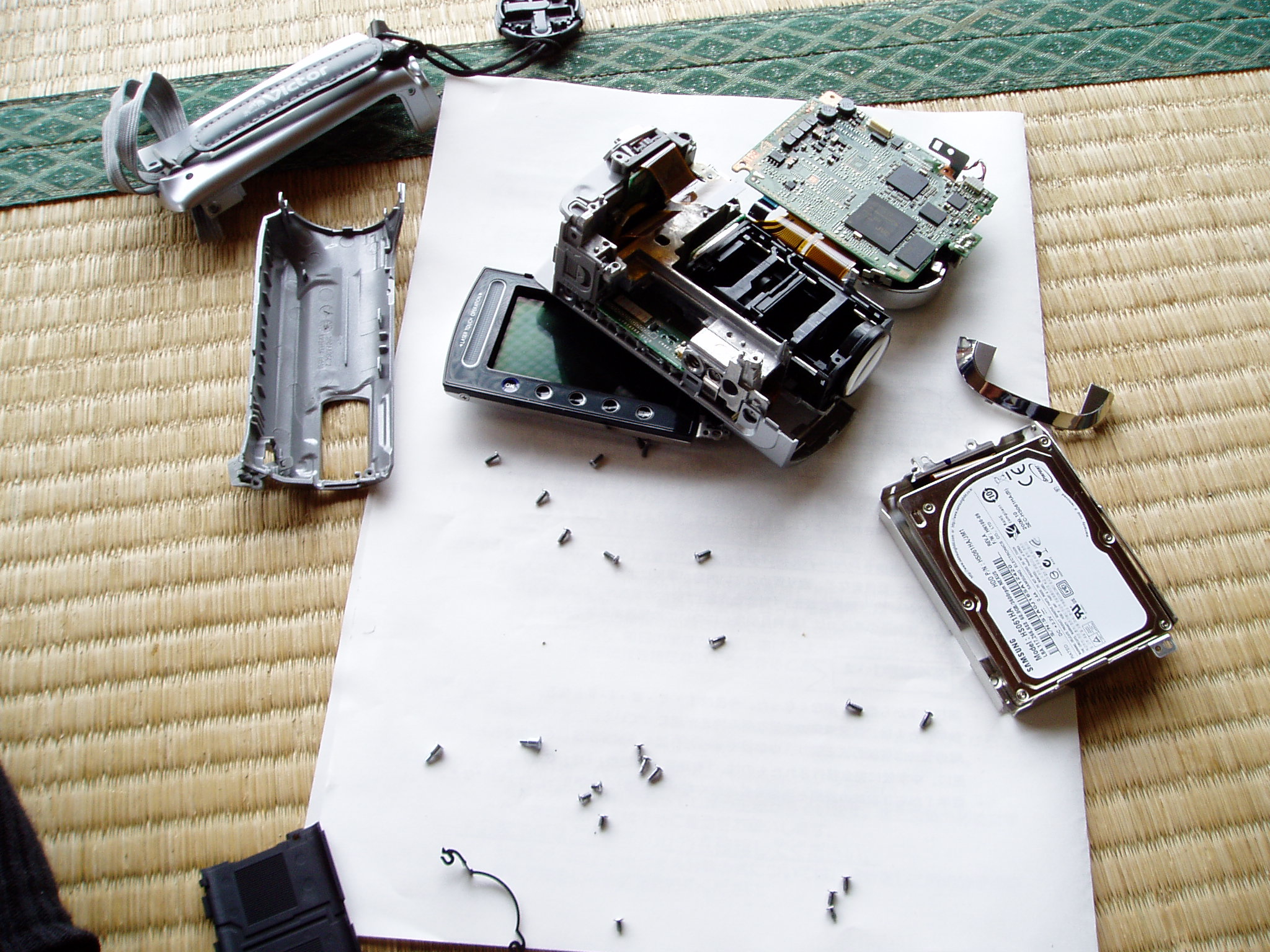 カメラのほうは再組み立ても済み、また使えるようにしました。ハードディスクがすごく小さい。それでも振動はあるので、特殊なゴムで挟んでありました。熱を持つので廃熱構造も考えられていました。