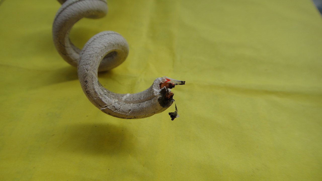 コードの皮膜が痛んでいるのは気がついたのにこの不始末です。片方のコードに被膜がついてると思って甘くみたのが失敗でした。皮膜なんかありません。